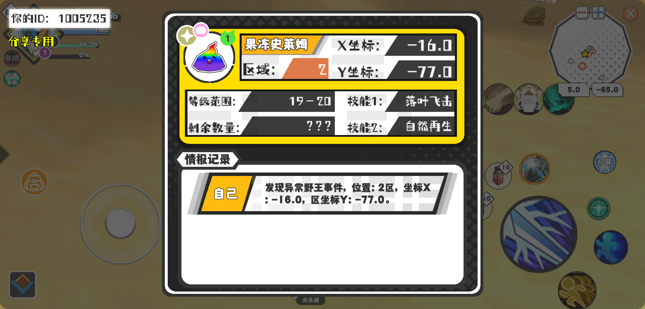 幸运时刻分享! 【野王异常出没】3月8日上午3点 - 果冻史莱姆【强度1】 【2区】 【X:-16.0, Y:-77.0】