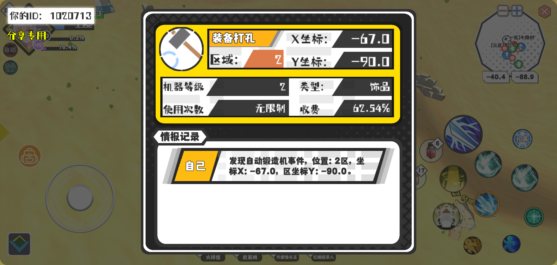 幸运时刻分享! 【自动锻造机】3月8日下午12点 - 装备打孔【2级机器】 【2区】 【X:-67.0, Y:-90.0】