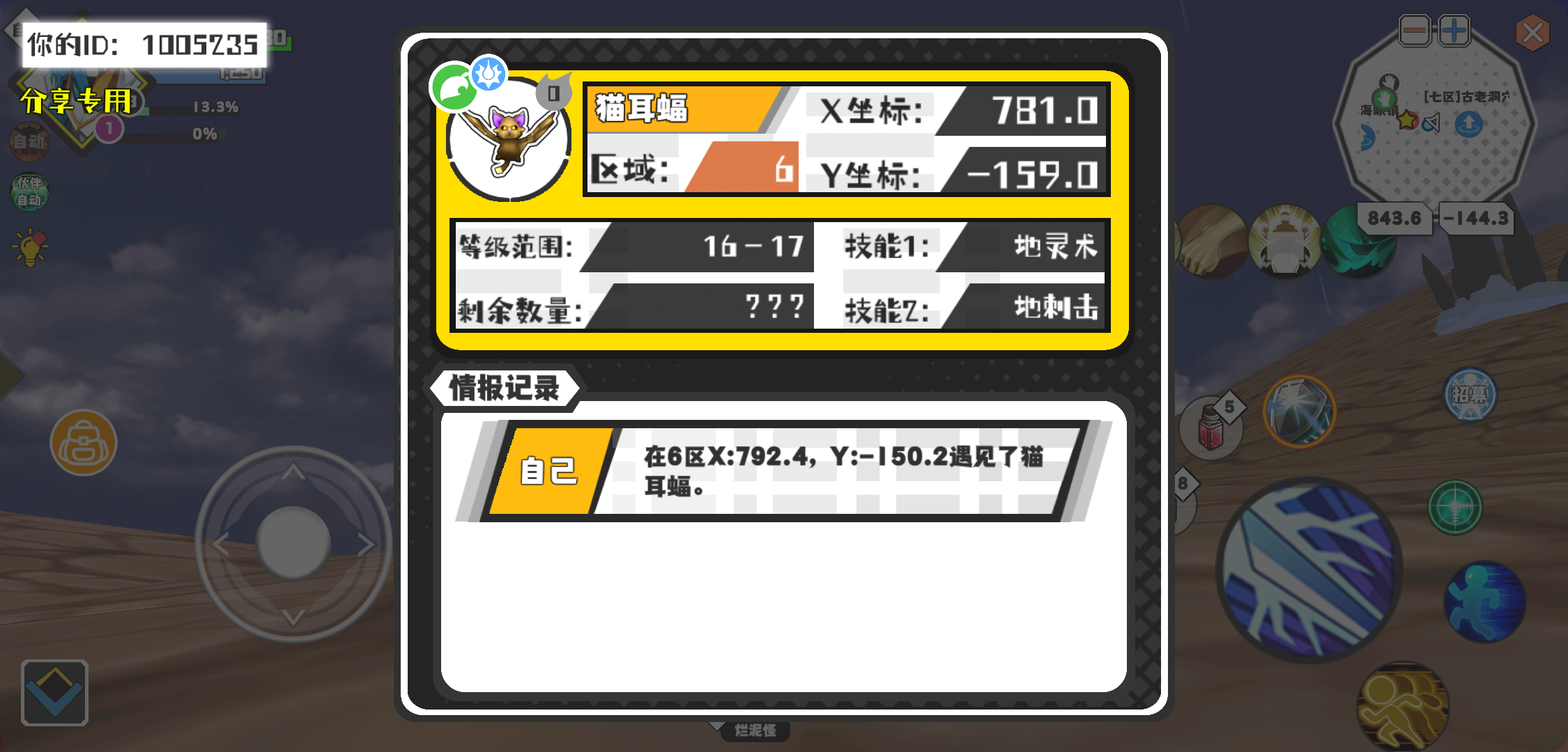 幸运时刻分享! 【魔物异常出没】3月8日下午1点 - 猫耳蝠【强度0】 【6区】 【X:781.0, Y:-159.0】