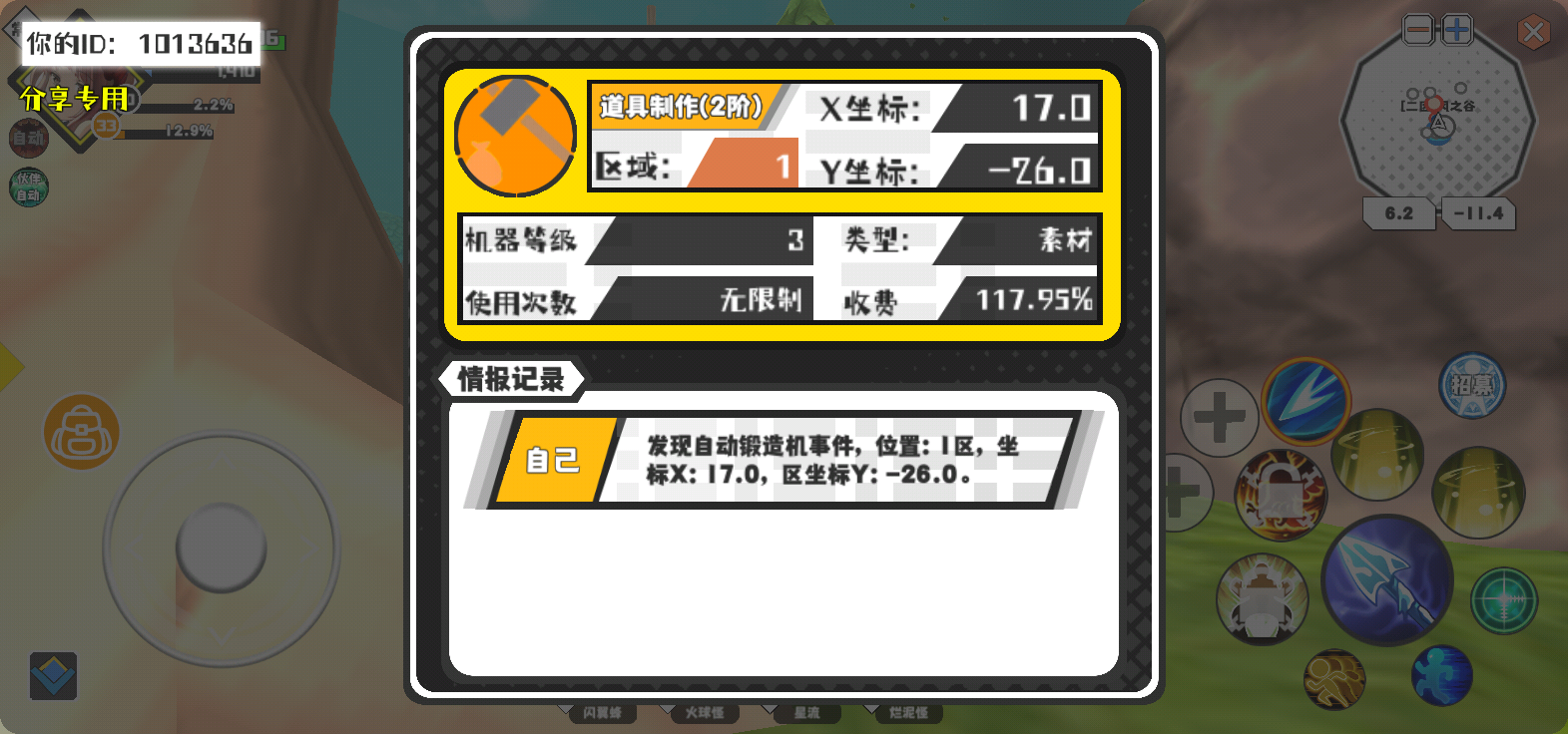 幸运时刻分享! 【自动锻造机】3月7日上午8点 - 道具制作(2阶)【3级机器】 【1区】 【X:17.0, Y:-26.0】