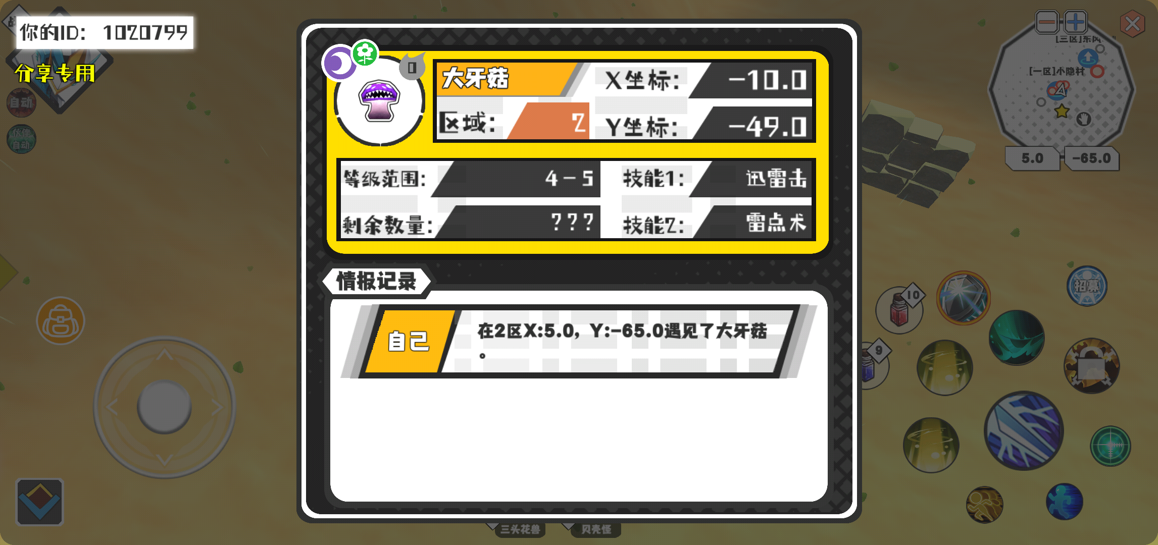 幸运时刻分享! 【魔物异常出没】3月7日上午10点 - 大牙菇【强度0】 【2区】 【X:-10.0, Y:-49.0】