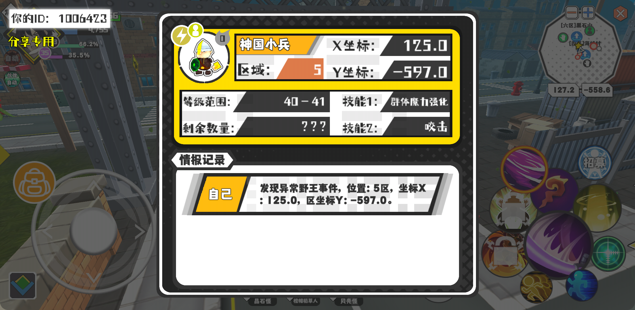 幸运时刻分享! 【野王异常出没】3月7日上午2点 - 神国小兵【强度0】 【5区】 【X:125.0, Y:-597.0】