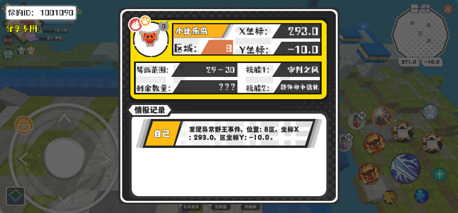 幸运时刻分享! 【野王异常出没】3月6日下午2点 - 小比乐鸟【强度0】 【8区】 【X:293.0, Y:-10.0】
