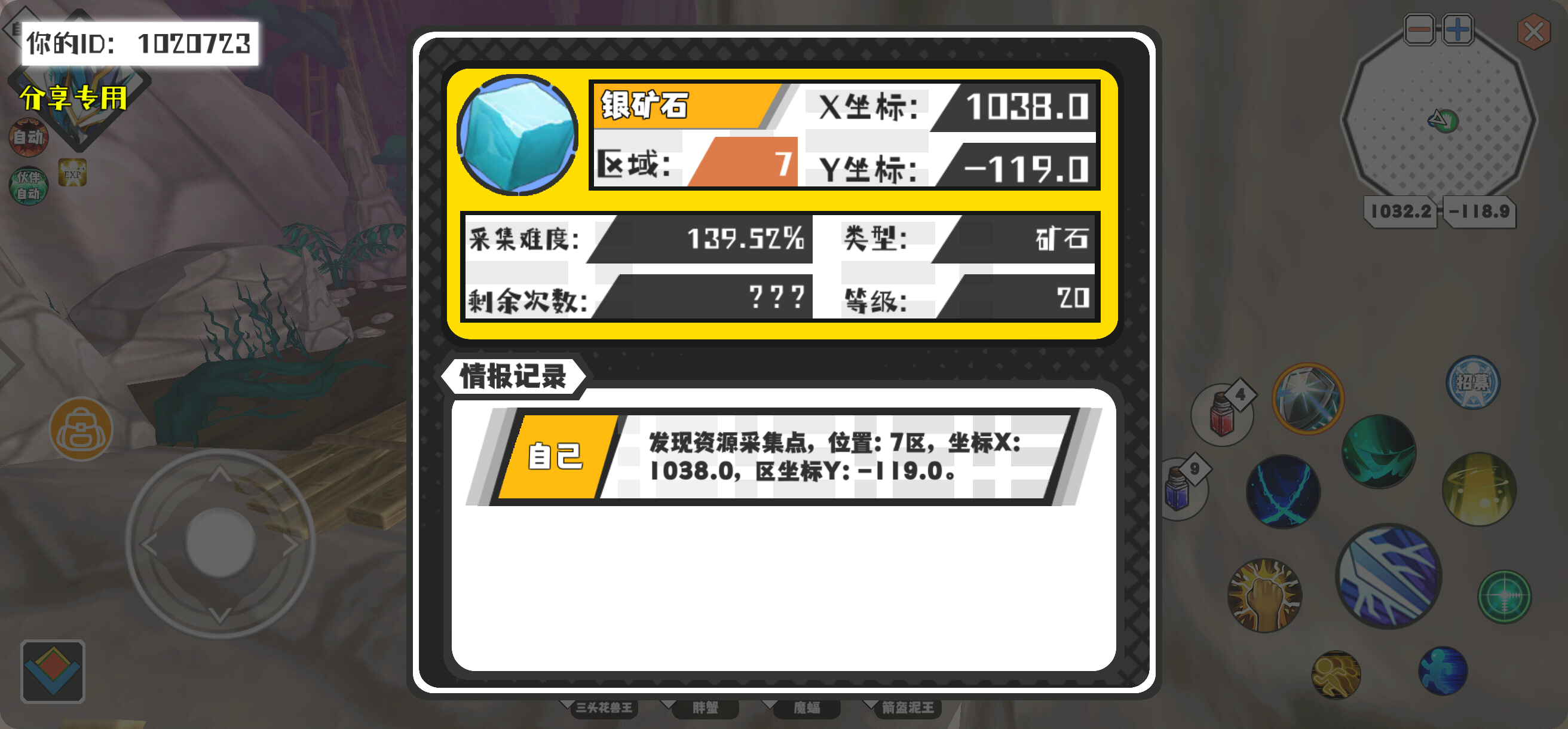 幸运时刻分享! 【资源采集点】3月6日上午10点 - 银矿石【20级】 【7区】 【X:1038.0, Y:-119.0】