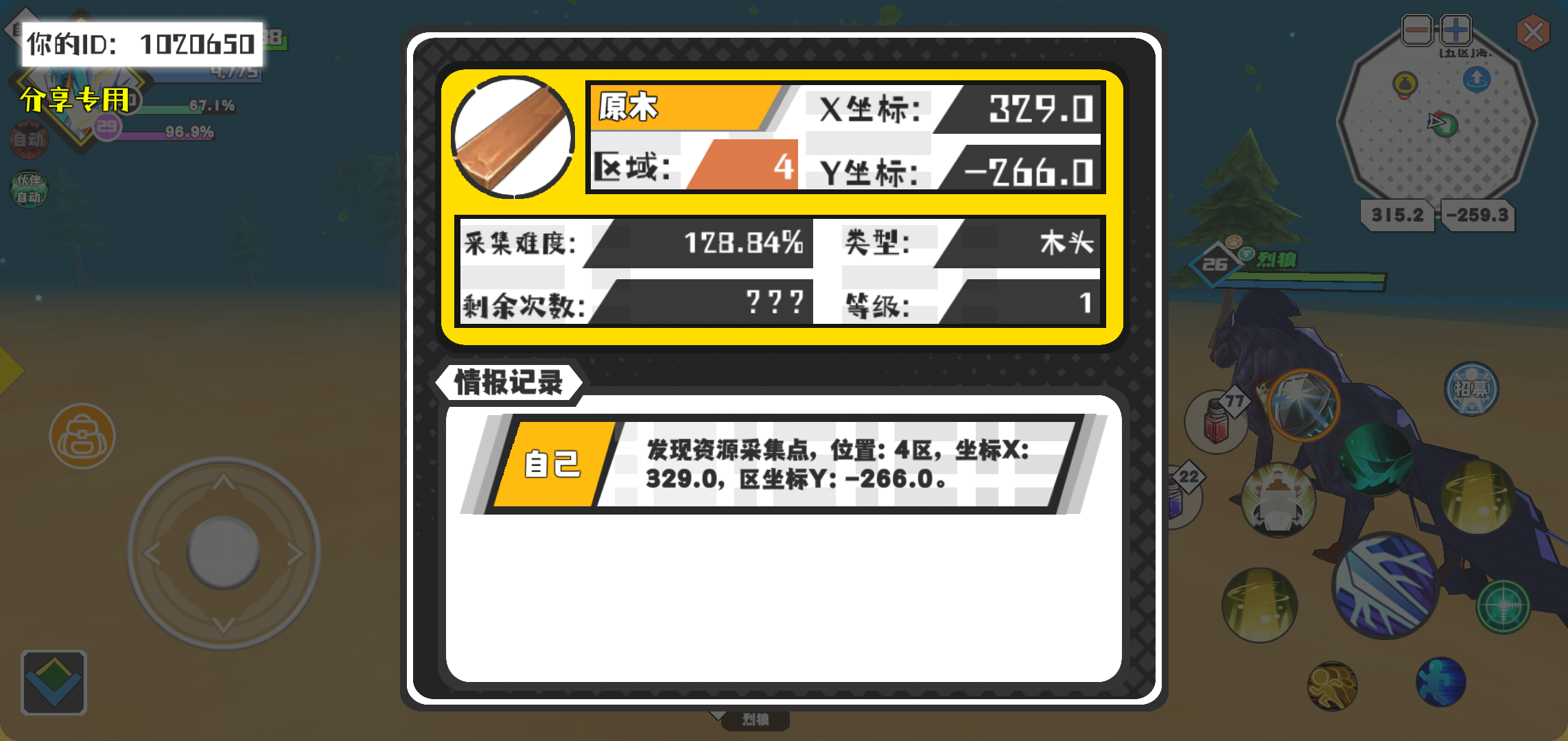 幸运时刻分享! 【资源采集点】3月6日上午9点 - 原木【1级】 【4区】 【X:329.0, Y:-266.0】
