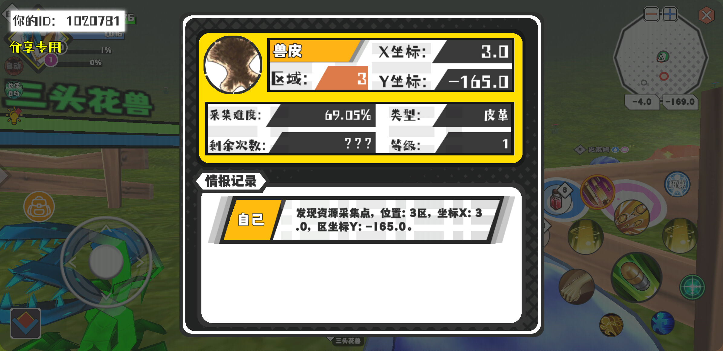 幸运时刻分享! 【资源采集点】3月6日上午11点 - 兽皮【1级】 【3区】 【X:3.0, Y:-165.0】