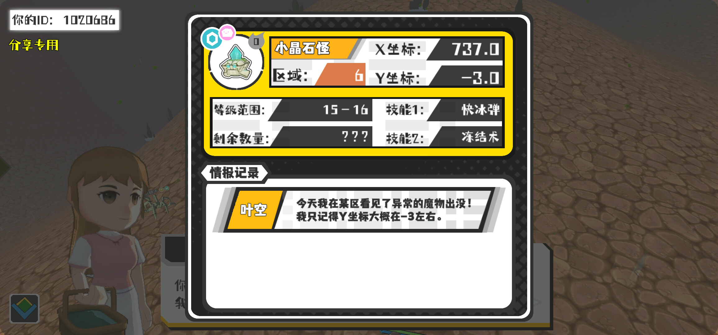 幸运时刻分享! 【魔物异常出没】3月6日上午11点 - 小晶石怪【强度0】 【6区】 【X:737.0, Y:-3.0】
