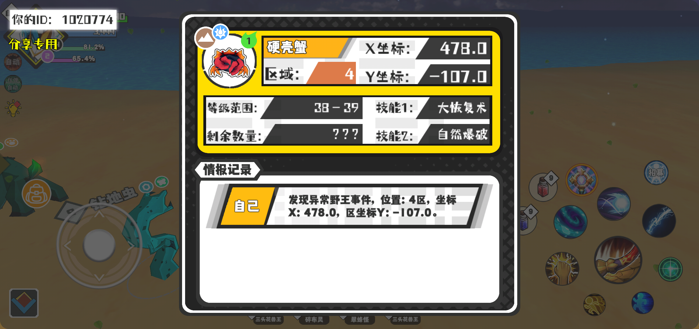 幸运时刻分享! 【野王异常出没】3月6日上午8点 - 硬壳蟹【强度1】 【4区】 【X:478.0, Y:-107.0】