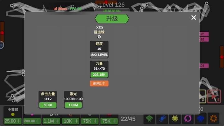 狙击球四技能点了,但是速度还是10级就满了,求解决