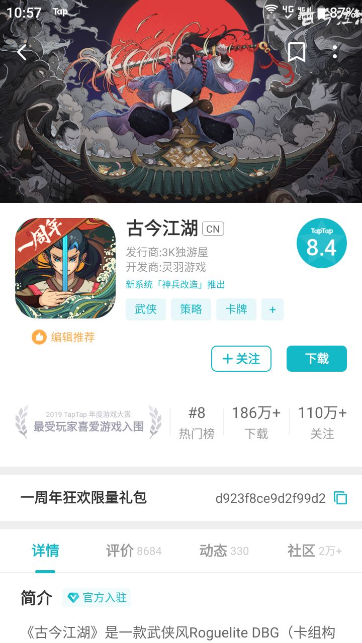 弃坑好久了 今天看到上推荐 点进来一看有个礼包不知道是不是像他说的一样是限量的 留给江湖有缘人