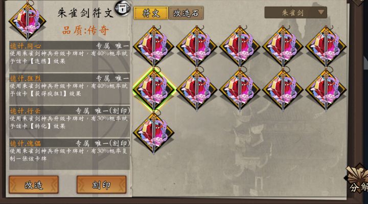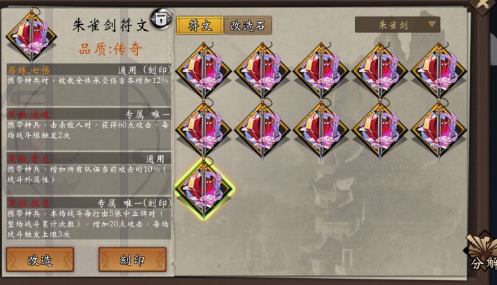 辛苦打了快二十张神话藏宝图才出行云刻印,就为了节省一个橙刻,累。倚天符文这下应该算毕业了,哪位大佬给一份打狗棒和玉箫顶配毕业推荐?想重新搞一下打狗棒和玉箫