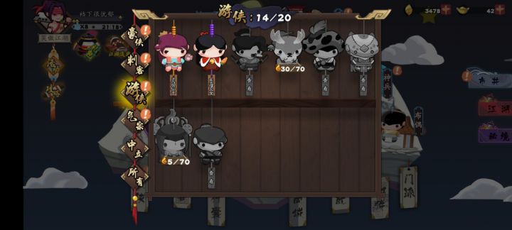 一直断断续续的玩,总感觉玩的那里不对劲……现在职业历练有时候都打不过,玩自残总是暗冲拳给自己搞死……化形有毒刺紫衣的橙。余馆主还没做出来(不知道跟谁做一套。有公孙夫人的橙,叠甲只有铁掌的一套礼包橙,宝图也打不过……我现在该干嘛呢。化形的话要先做谁的啊……阵容怎么陪呢,还有那个巅峰我一个都没打过……😂😂😂有没有大佬给点意见,包里有50+大体力100+中体,跳关幻境都跳不了……难受