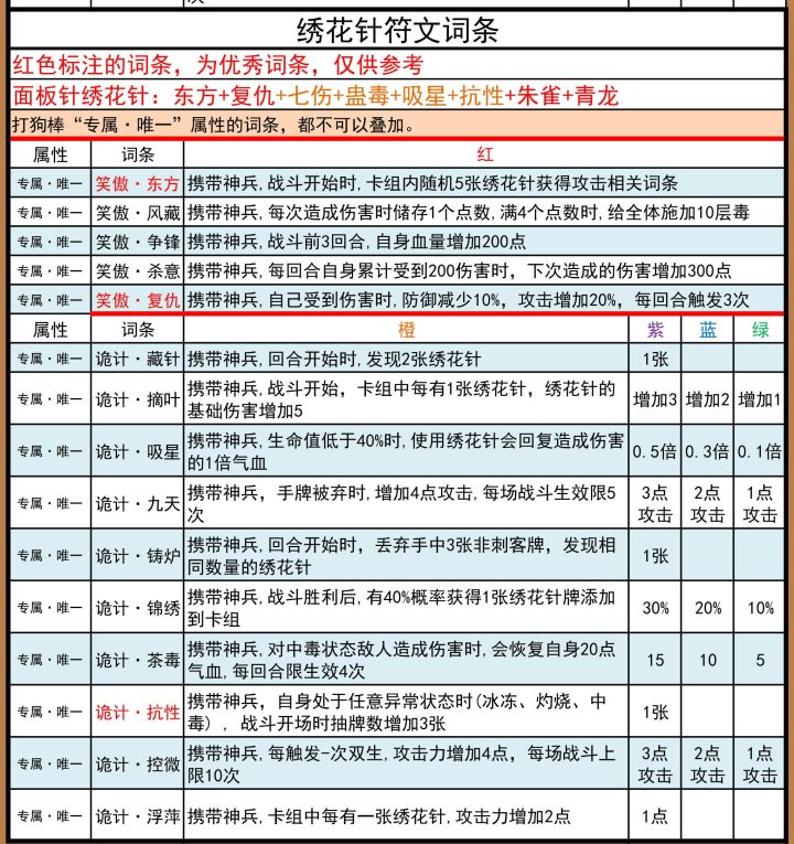 神兵迟迟不更新,而资源已经积累的很多很多了,决定把绣花针做了(不玩针的刺客现在居然又是最弱的流派了)球球各位大佬的推荐,资源不是问题主要问题:1.铸炉和藏针,体验过的大佬推荐一下?2.抗性抽牌溢出的问题严重吗?如果很容易溢出就算了3.杀意的具体机制是怎样的?可以一回合内多次触发吗?感谢一念的供图目前锁定下来是:通用类:蛊毒 复仇 朱雀 + 青龙/抗性,二选一纯针流加强类:东方