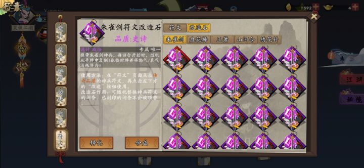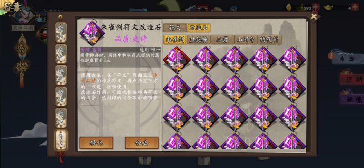 给点建议呗我还有没有必要买1688金叶的富甲呢?我目前自己有,不过听说富甲是加4攻,我这个三攻,不太懂。还有就是,我想问问,你们的符文都是从哪得的呀,我好想要一个朱雀剑的符文,江湖道典送的三个随机传说开的圣火令和打狗棒还有绣花针。抽了一堆改造石,但是没有符文。。。(冰天怎么来的不记得了,好像是合成的?反正没买过自选石)还有就是那个自选改造石选什么好?戏法吗?