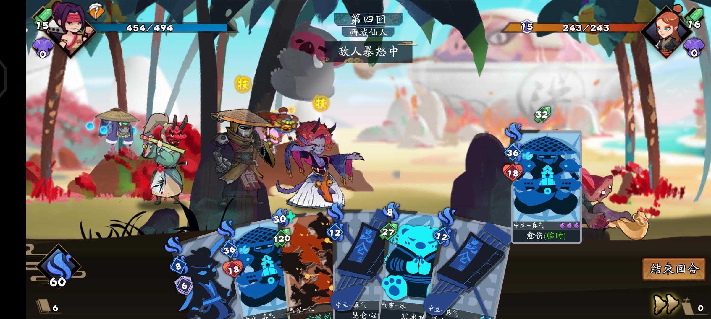 哈哈哈,敌人暴怒中,你无法出牌,只能结束回合。然后一直在暴怒中,然后只能点结束回合。