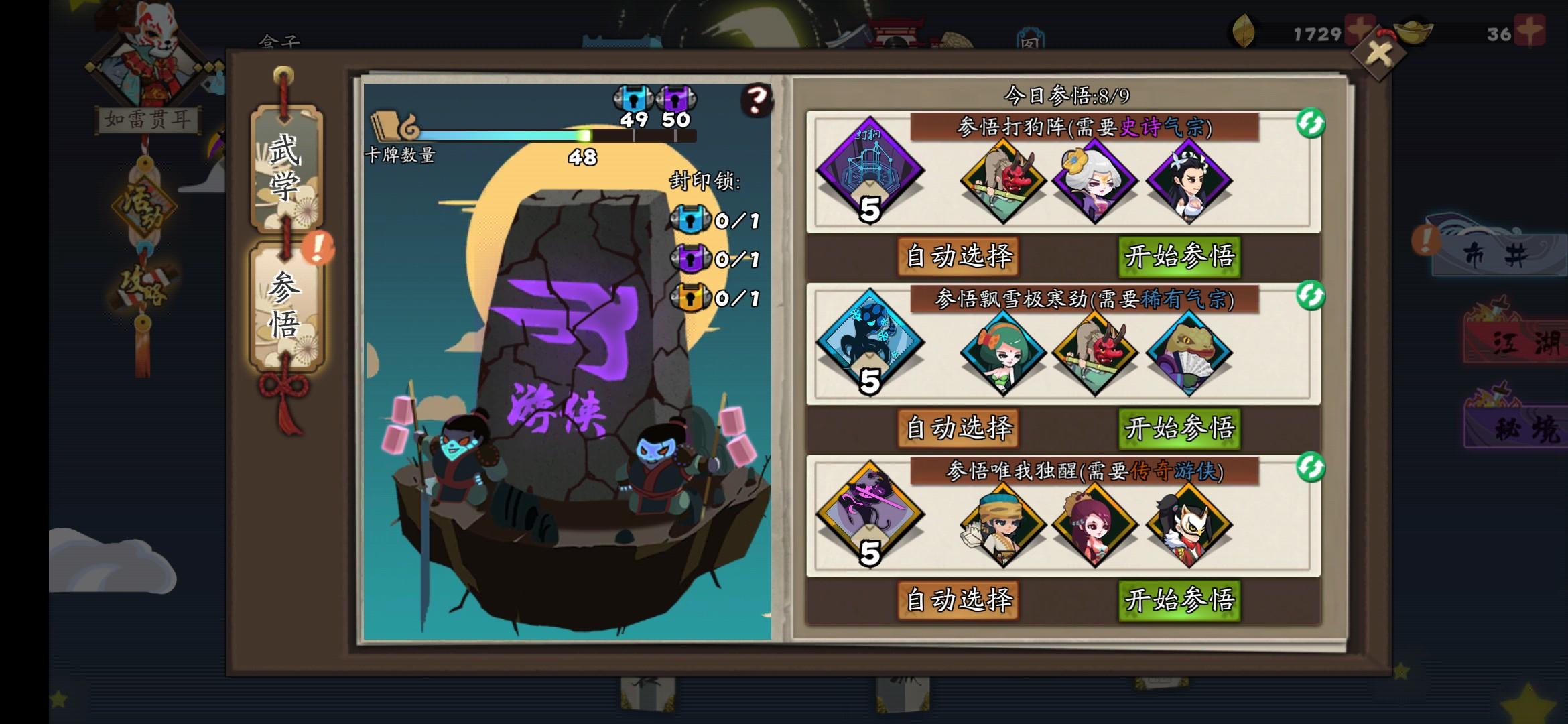 石碑参悟三个武侠怎么只给5个碎片
