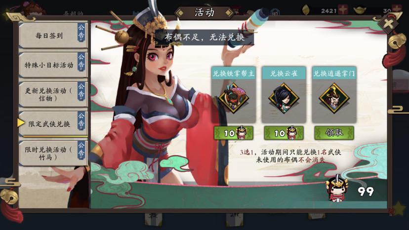 什么都换不了。一直提示不足?然后第三个直接显示领取。点了也没反应。能不能玩了