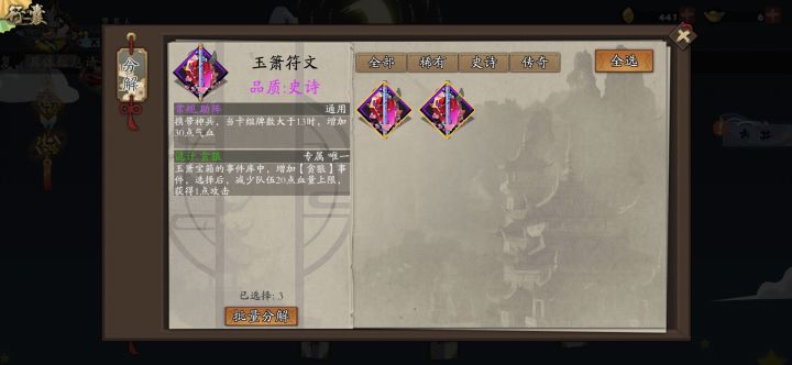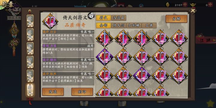 凌晨惨剧还原1.更新进入游戏2.分解只能橙符文处有3.手快点了全选,又点了下以为能取消4.换到紫符文,全选,分解5.橙符文,紫符文全部分解6.还剩下装备的两个倚天,两个玉箫7.这ui是不是有点问题8.珍爱生命,小心分解