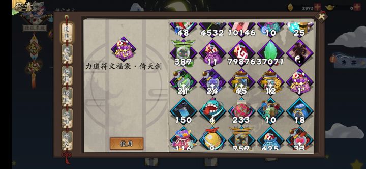 觉醒多出几个啊,药草加一起都大几十万了啊。也不知道干嘛用,武学自己都不知道有多少富裕的。化形也都全了。就是符文没太好的。