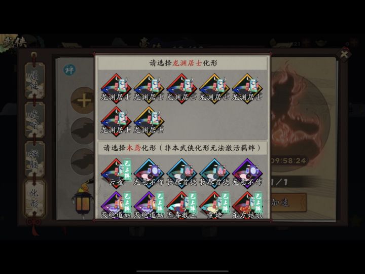 正式玩的第35天,又肝又氪,今天趁着第三弹礼包终于收集完成了,除了武当掌门、九剑传人、琴圣、成吉思汗和康夫人外都满星了,主流化形也快齐了,开心,打卡纪念。终于可以佛系当咸鱼了,目标橙武侠每人三个同名红化,估计要明年去了吧。