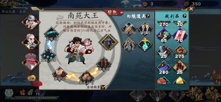 纪念一下人生第一个戏法,以后我也是有戏法的人了。前期用的龙渊加慕容复加铁掌帮主,龙渊慕容复橙化,铁掌没做化形,后来感觉没化形的铁掌没什么用,果断换上了宫主提高回复能力,全程血基本没满过,血量忽上忽下真刺激宫主真是万金油,以前配大剪刀刷地狱图,现在玩反伤还能帮我出来撑场面有些符文啊,明明是金色的却全是紫色属性