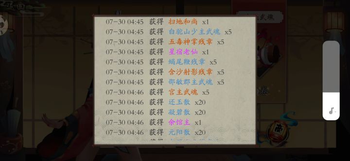 重复抽到星宿老怪,余馆主,鹰王。抽卡体验极差。重复三次抽到同一张卡,这概率也低吧。我居然碰到了,运气真差。令人安慰的是出了太极传人和扫地和尚,还有保底玩偶。综合来说还是缺点欧气,还有就是点到的三张紫卡真的恶心到我了。即使他们都是我目前炼狱历练的主力。淦,屮