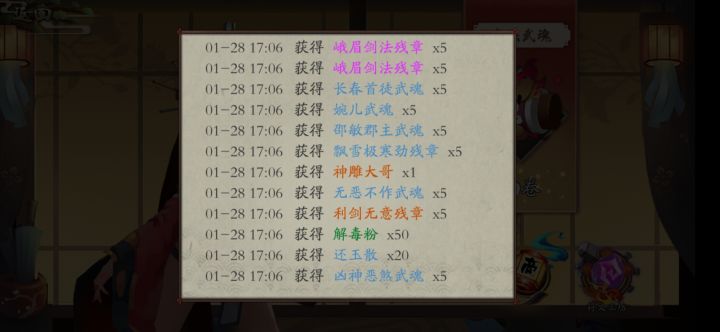 今天登了另外一个区 打过第一关 发现这个号应该很久以前登过觉得不好玩就删了 没想到邮件全在 看看多少卷轴