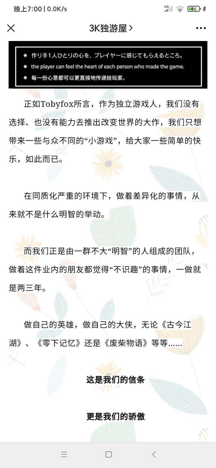 今天3k游戏更新说明,发现下面有个游戏商出的一周年总结报告,,,信条与骄傲,写的真好
