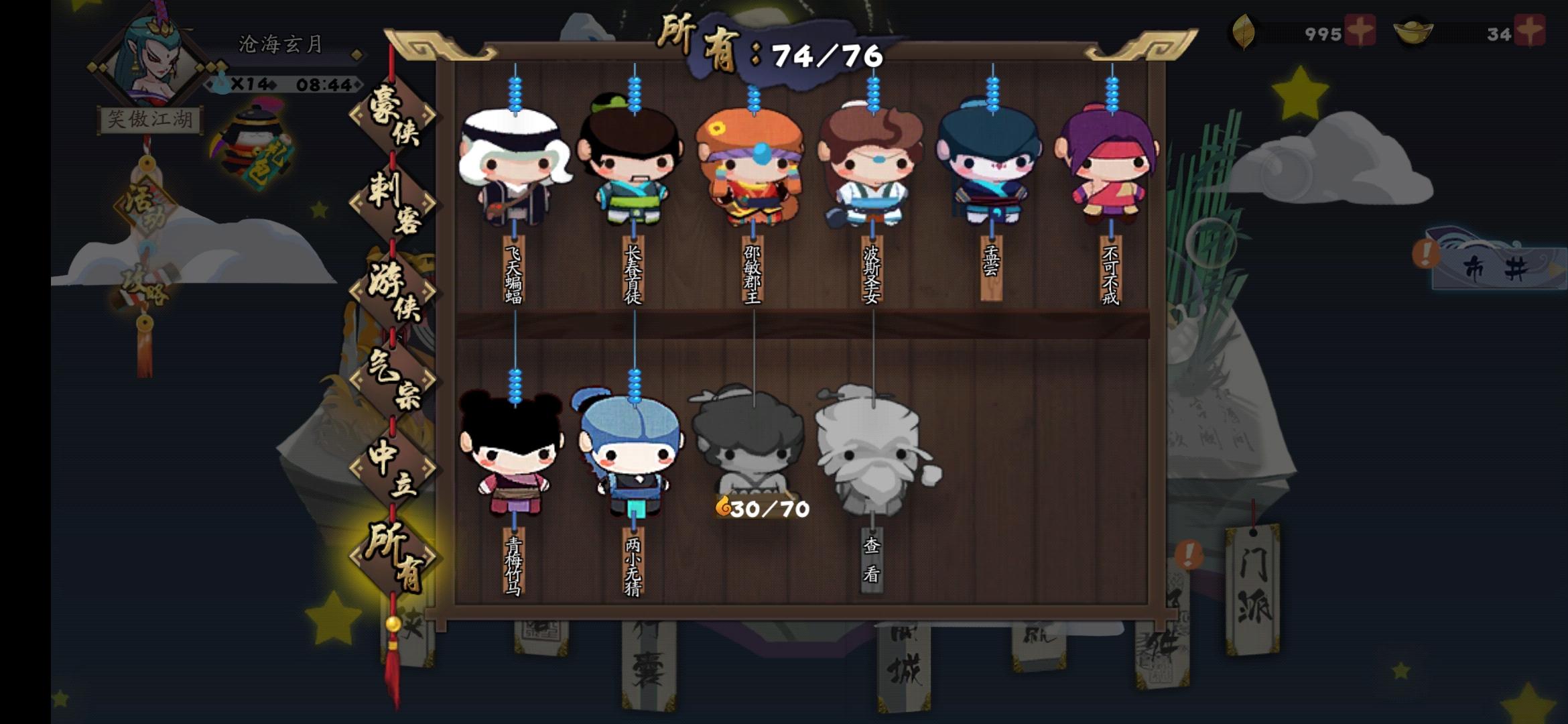 70抽,5橙3new,10个碎片,我也是满武侠的人了