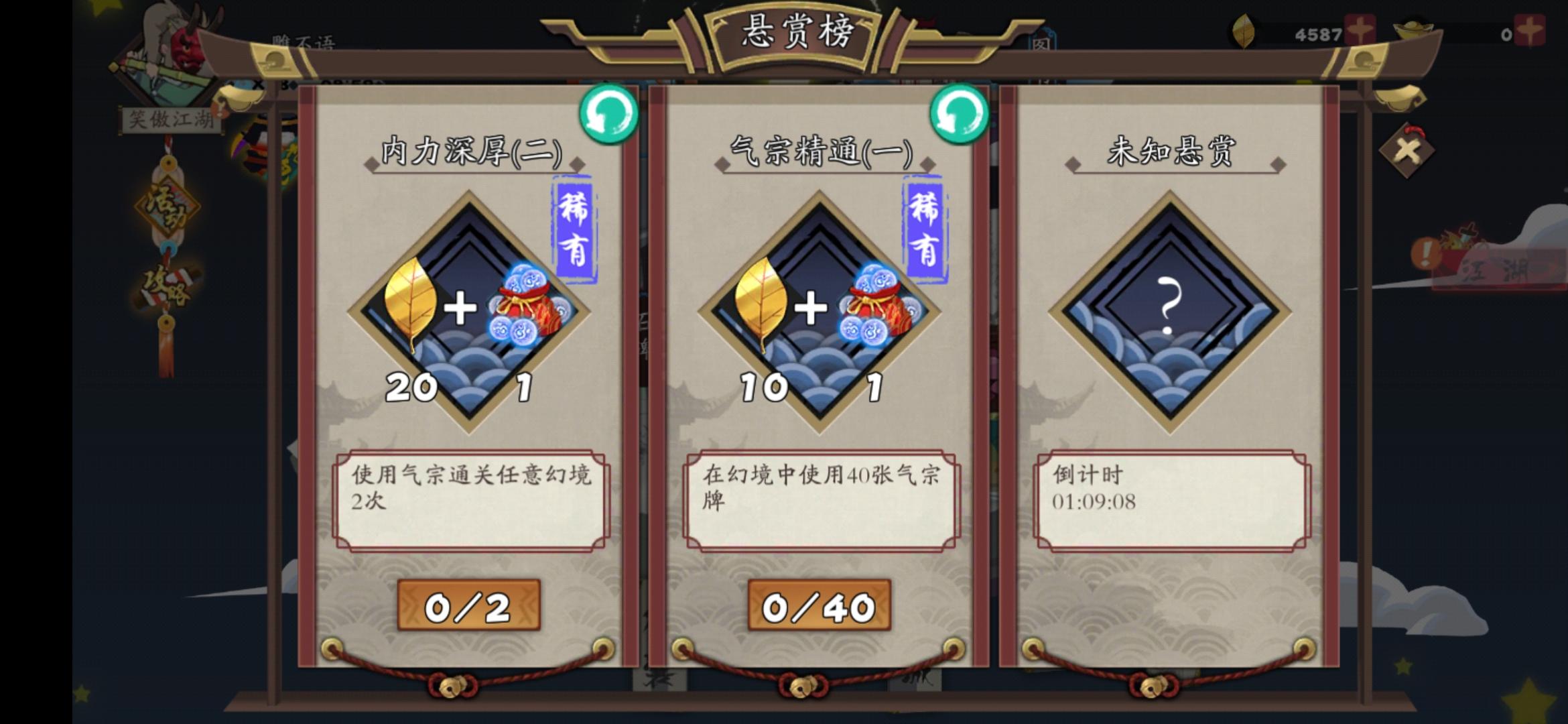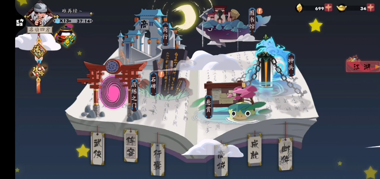 今天10点钟这个重要的时刻,我满怀希望,等着剑魔,重阳什么的给我抽出来一个结果众所周知,54抽1重复橙8紫,8紫里头剑圣和玄冥还超了120爆牌了,沃日娃娃也给的这么少好几次8抽出紫,太难了,没有了刚玩时候抽抽就有新武侠的感觉,我顽童郭靖真就都卡死故事了,地煞做不起,空有一手2星玉枣核再分享一手录屏