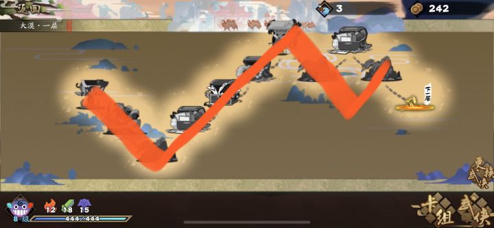 昨天借大佬的路線,發現我這個菜雞不配一張袖箭開局,於是死了,但是,我不服,所以今天我自己摸了一下希望能幫到各位有需要的人第一層第一個山洞和最後一個山洞換袖箭第二層比較隨意了,摸裝吧連弩到手後鎖掉用扇子拼九陰真經大家加油三樓有我九陰真經大成之後的牌庫,菜雞也能無情掃三人