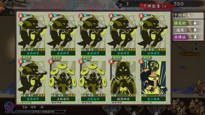 武侠肯定经脉点满。傻瓜式操作。视频中的就行。可以更精炼。可是看到好牌忍不住就想拿,少林棍一张就行。3张水上漂,1张打狗棒,1张少林棍,一张阳春白雪。最精简,稳定伤害也够