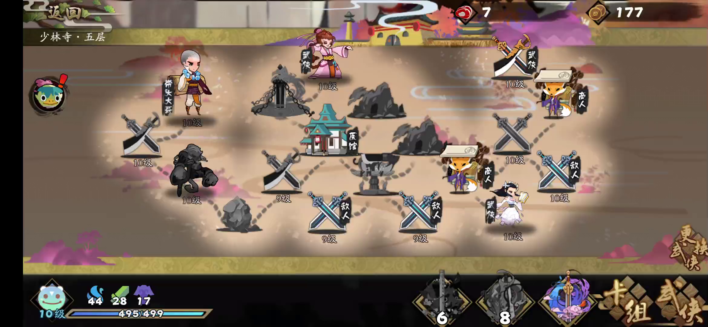 更新一下套装选择:神级通用套:四象(速刷专用,特别等到牌的等级和经脉升上去后期很少存在第二回合,而前期基本是抽到六绝就结束战斗,常用段誉技能可以增加速刷速度)次神级通用和职业套:红玉(配魔主清特殊怪,为什么不是神级?可能是太容易得了吧,一般职业套我只选这个。)清虚(同四象,不过是三件套,还就多一张牌)罗汉(食物一般就用来删牌,有罗汉基本不掉血,就不用想着啥时候来一发魔主技能,无形提高速刷效