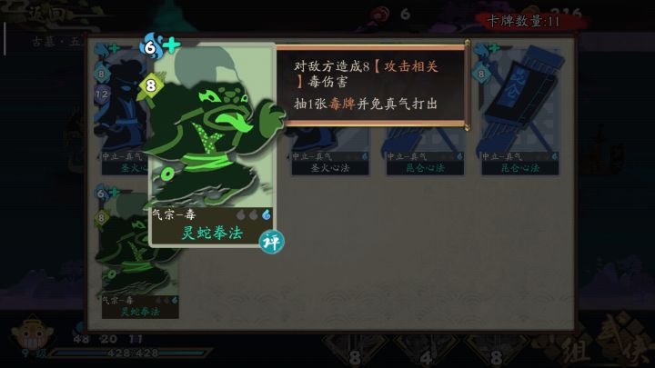 核心人物:无,只需要带个白驼山少主,开局有个灵蛇拳法核心卡牌:灵蛇拳法(重要的是它的抽卡免费打出)灵蛇引(疯狂,下一张多打一次)昆仑心法(发现两张内功,升级三张,看脸的牌)核心套装:三生套(古墓独有,打出三张同样的再发现三张同样的没升级的)无相套(没手牌抽卡)玩法:应该有些人已经看过一个大佬的帖子好几张灵蛇拳法的欢乐。不过我们不需要这么多,一张灵蛇拳法,一张灵蛇引,两到三张昆仑心法,其