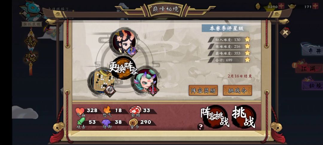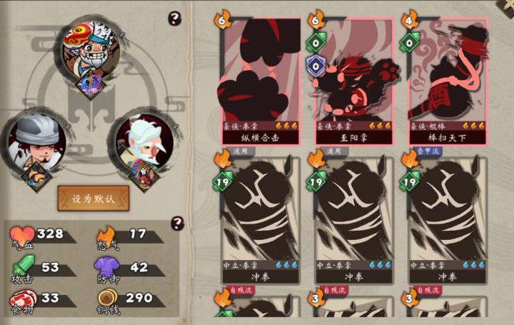 先上图吧,证明我真的过了既然能过,那说明方法还是合理的,我详细说下打法,大家帮我看看还有没有其他可以精简(省钱)的地方。毕竟游戏里还是有很多像我这样的回归老萌新或者贫民的,造价低就显得更外重要。那么,我就开讲了:一、进图阵容考虑1、基本原理:1铁布衫换1刺剑,2铁布衫换2武当心法,开场换牌基础目的是减少铁布衫的数量,换刺剑是为了提高融剑的输出,换武当心法是为了抽牌(过牌)。2、进图阵容: