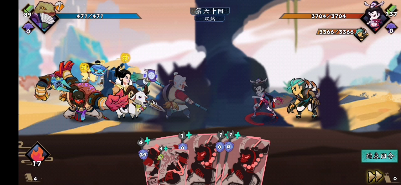 大致思路是升级的金钟罩加内径伤害,加过牌,以上是具体操作,但由于过牌不足导致鬼抽,只秒了一个。以上是改进版,但是怒气用完没冷血导致伤害刮痧(最后还是选择自残结束)
