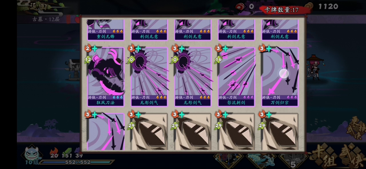 云雀红化:前期过渡,后期无用,卡牌不错成吉思汗:被动(护甲)可用于硬刚洪七公清风套:提高冰冻层数利剑无意:打出更多次无形剑气,提高输出力劈华山:如果拿这张牌,一定要上回返,防止利剑无意将其打出缺陷:打东方要谨慎,打洪七公费时间为拿不到唯我独醒的脸黑同志们量身定做诸位少侠可在评论区提出宝贵意见