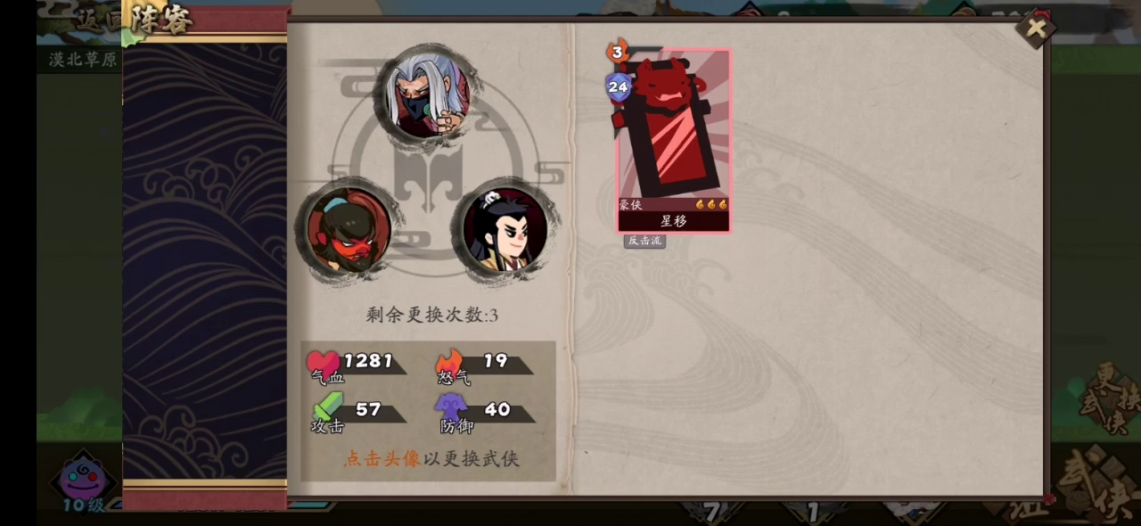 武侠:龙渊居士+坞主+铁掌帮主卡牌:单一张星移(有的怪你不勾引根本不来动你的,必须带一张)装备:罗汉套,千里套,降龙套,其他能撑血就行。关于历练可行度?大概3000血可以一战吧,最大问题还是没有主动的续航能力。最后似乎没录完……