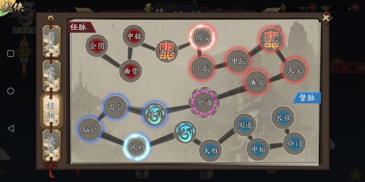 继承双倍、固有(赵敏可以附上)、共鸣的龙象,实现速刷,一次循环大概7到8分钟左右,能拿到100%的材料,80%的碎片,缺点是前期准备时间长和没有宝图,人物属性如下,康夫人筋脉点到技能加2,和武学+1,波斯圣女0筋脉。
