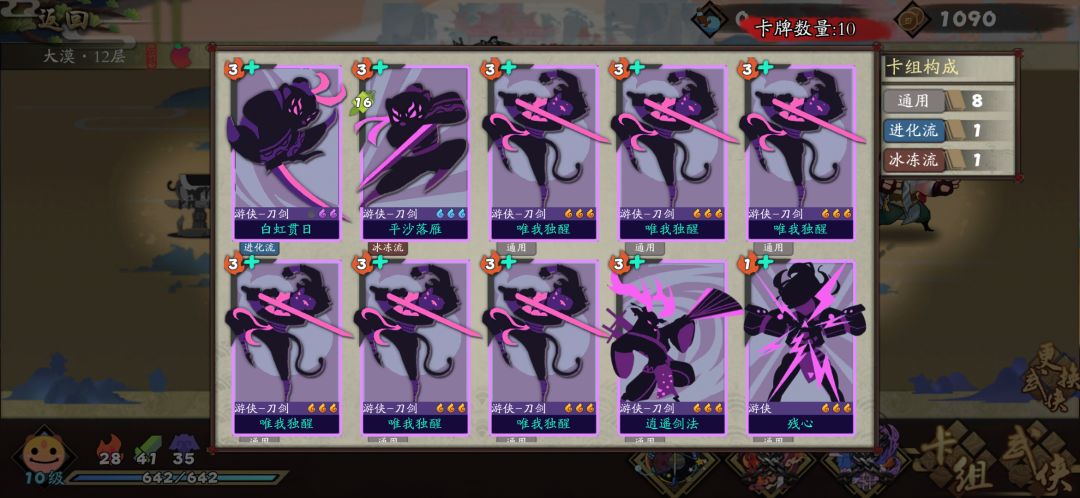 武侠:左使 成吉思汗 云雀装备:四象 清虚 清风 无相卡组说明:暗白虹给所有手牌上冰冻,所以替换了成吉思汗的武学,这样翻倍更快;逍遥剑法是为了减少重复叠冰的操作,黑商有幻舞给平沙就可以不要这张了。翻倍卡:暗唯我独醒——中规中矩的翻倍卡,三星三费翻两倍,升级会去掉移除。不过由于基础冰冻叠不了太高,翻倍也只有两倍,所以伤害累积慢。游侠弟弟的冰冻流为啥发展不起来呢?原因有很多。成型慢,叠的基础不