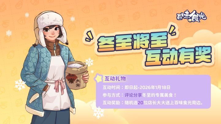最近冷空气突然“到货”,翻日历才发现——即将冬至啦!冬天最治愈的,莫过于那些热气腾腾的食物。不管是妈妈煲的汤、路边摊的烤红薯,还是自己捣鼓的创意料理……总有一种味道,能瞬间把寒意驱散~各位店长大大快来分享冬至的专属美食!肉肉随机揪十位店长大大奉上精美周边哦~往期活动【其他资讯平台】更多开店情报与福利陆续有来,关注官网社区与自媒体渠道,海风小镇情报一手掌握!→→→→→【活动说明