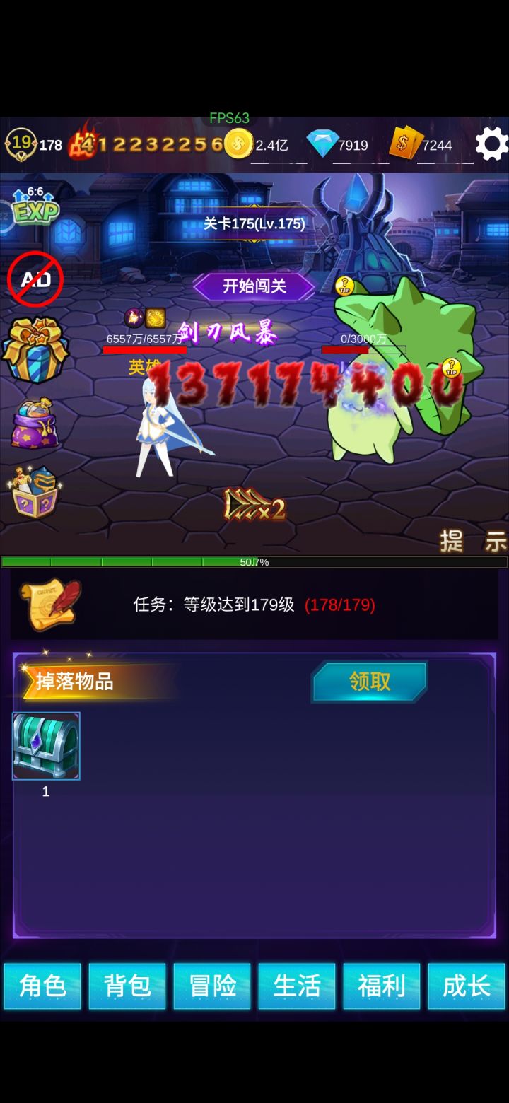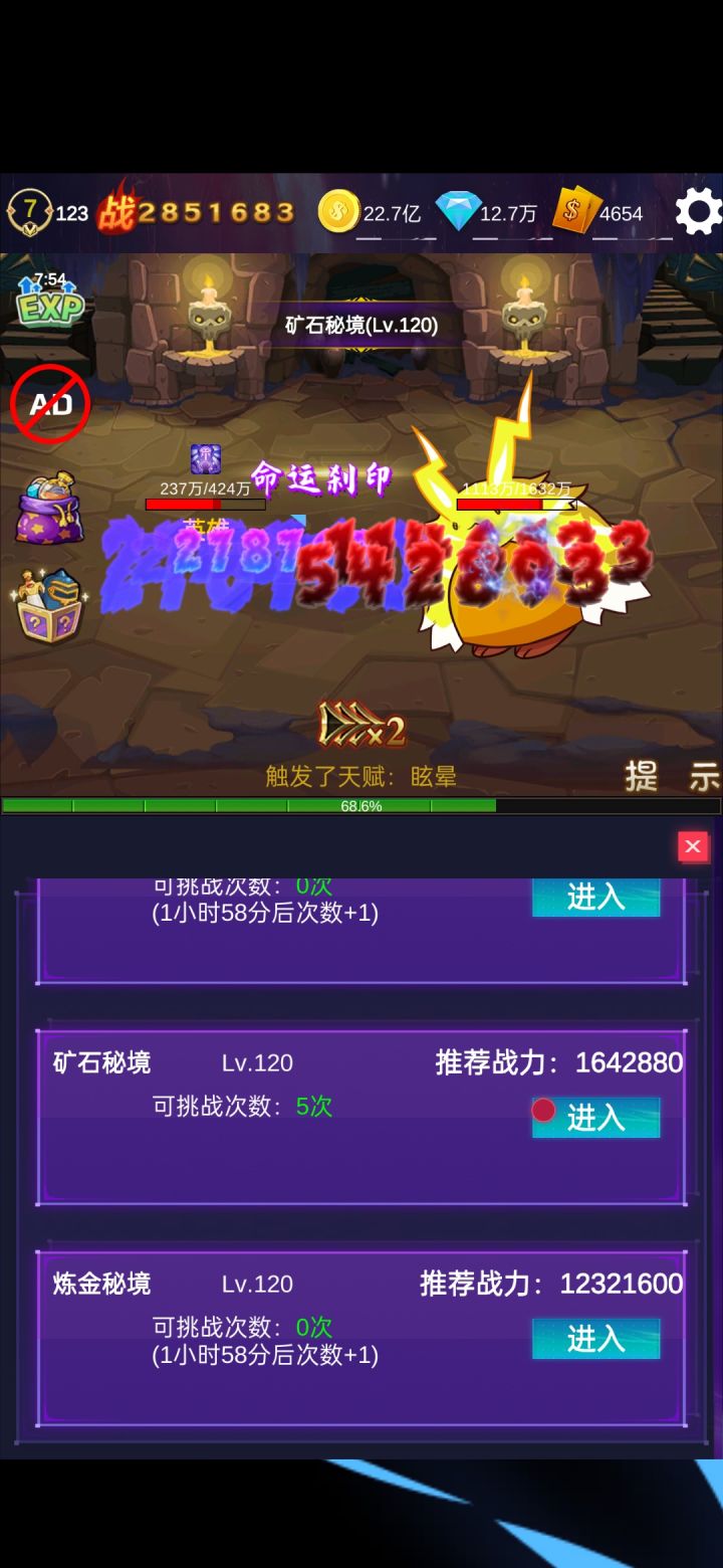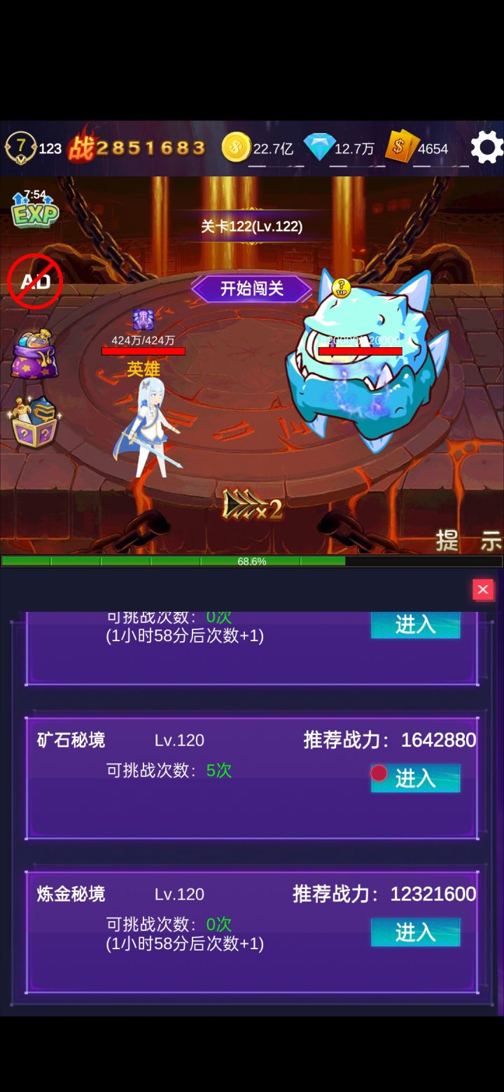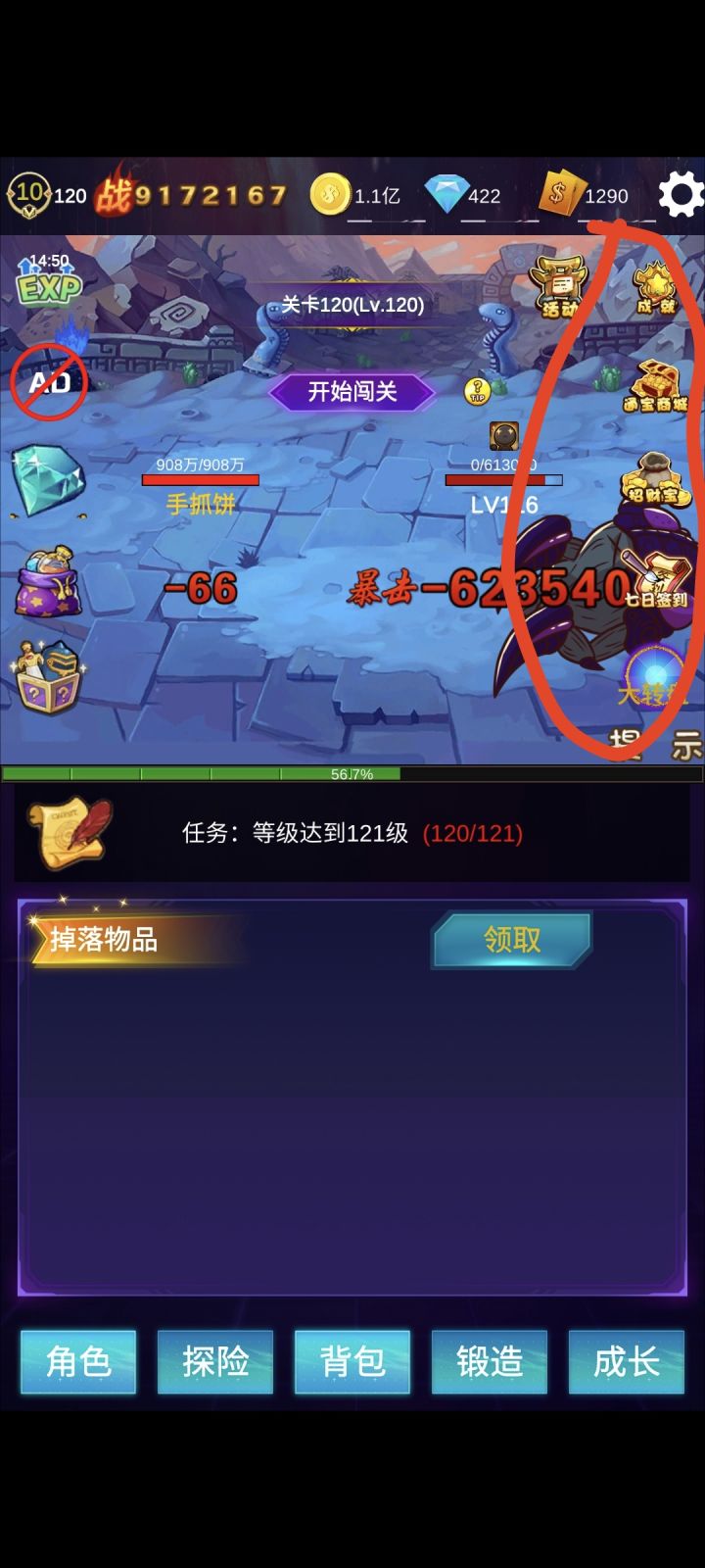 每天20个广告以后就可以免广告开当天的剩下的奖!没有充值入口!纯放置,不肝随缘!应该放图的我最高了吧?!