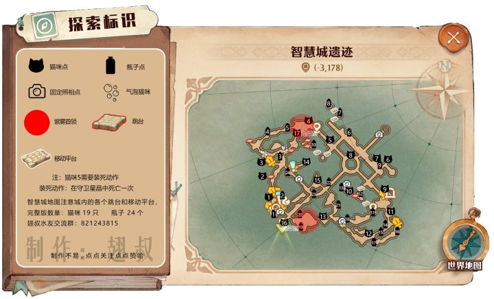 哈喽 小伙伴们好,智慧城遗迹的完整探索攻略给大家做出来了这次新地图的猫咪和瓶子相对没海港多,相信大家早起来会更方便有帮助的话给翅叔 点点关注点点赞哦#攻略