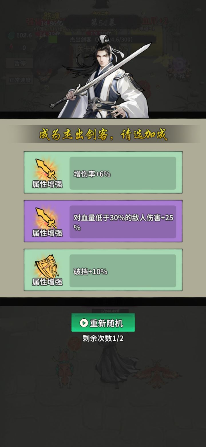 选了2次破挡+10只生效一次,+15破挡也是2次只生效一次,+20破挡太难出了,没碰到过几次。没法测试。不知道是只有破挡这样还是类似的攻击,增伤,爆伤,减速,加减伤都这样。