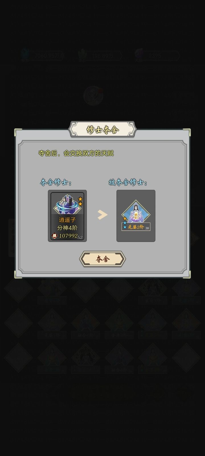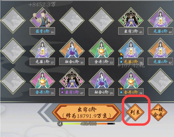 你们要是真没能力做好《鬼怪合成系统》,那就直接抄袭吧,把同行设计照抄过来一,自由抽取各阶品阶(避免了丢弃)二,直接夺取未上阵弟子属性(避免了通过合成获取属性)