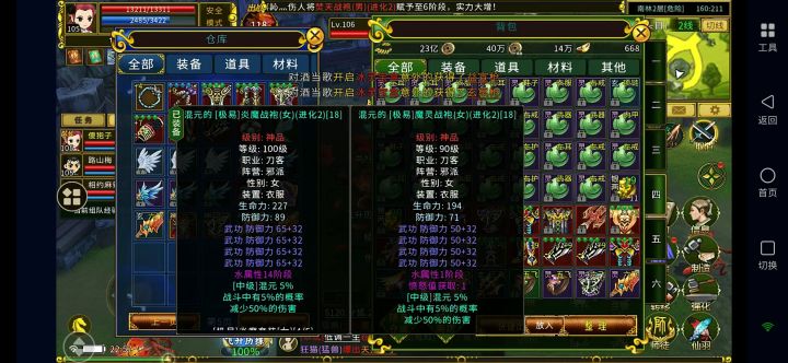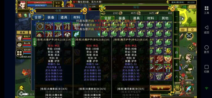 今天晚上偶然间测试出新漏洞,请及时更新,避免不必要麻烦,首先打开仓库 点击一下背包里面的的装备 让装备处于对比状态 然后继续点击一下背包里面的装备,你就会发现装备的强化会翻倍,目前只是视觉上翻倍,并不会产生实质上的变化,不知是技术故意留的,还是漏洞,
