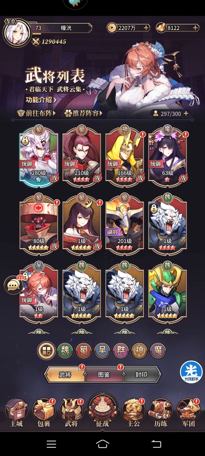 魏国的武将阵容,抽出的卡大部分都是魏国的武将,前期的战力提升还是挺快的,我发现武将的养成方式很多啊。