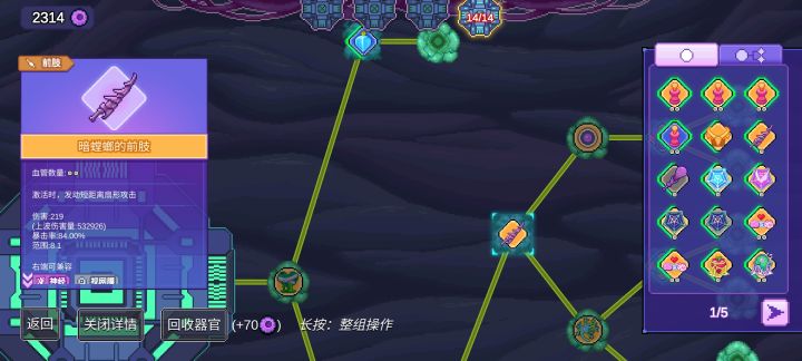 角色选幽影,核心就是蓄液袋+根须我玩的是沙盒模式,选蓄液袋 根须 翅 前期苟住,优先拿无足鸟蓄液袋+始祖鸟的翅有了多余的蓄液袋和翅就可以开新头脑品质和掉落等级点的足够高了就换图上的阵容禅龟或者木乃伊蓄液袋+始祖鸟的翅和加血加盾掉磁铁的根须当你凑齐上述的阵容,就可以开始爽了!!精英?秒!boss?秒!15关的大boss?也是秒!!!(理论上打正常关卡和无尽也可以玩但是比较看运气)