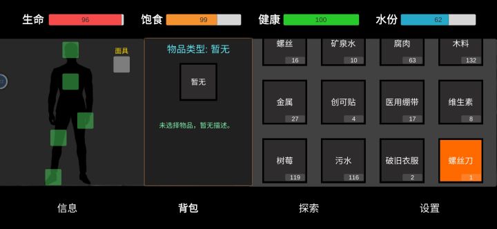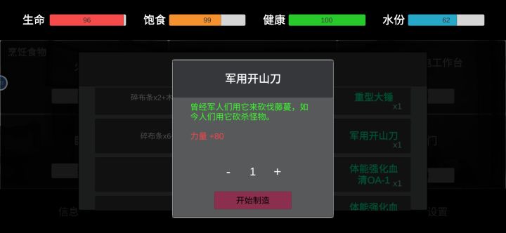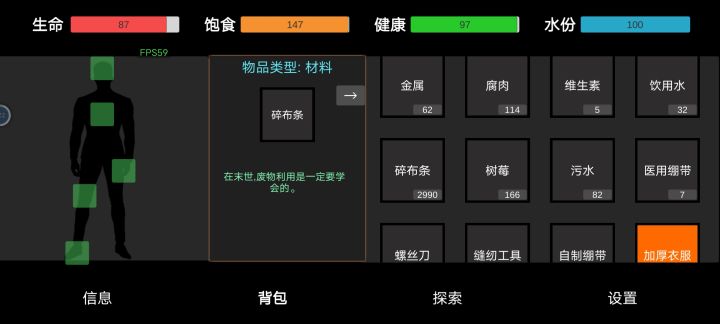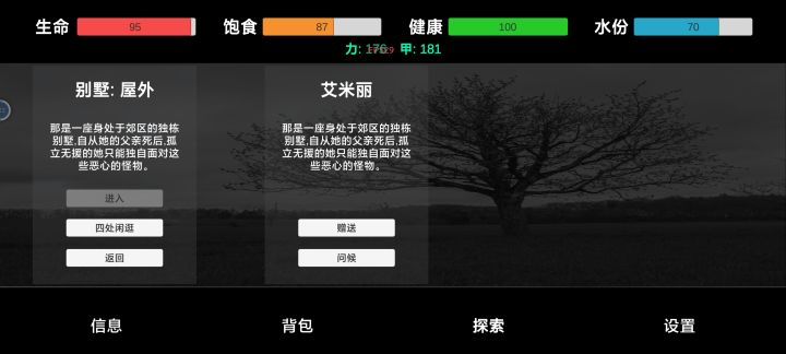 两个血清都是每次永久加450,暂时500,代码变量参数什么的写错了吧,应该是加50减50吧,睡觉不回血,倒是现在点火回了。以前版本好像健康不掉,现在改了。文字游戏的话,做的还算不错,再接再厉,重复性有点高。