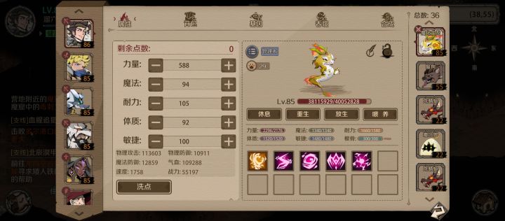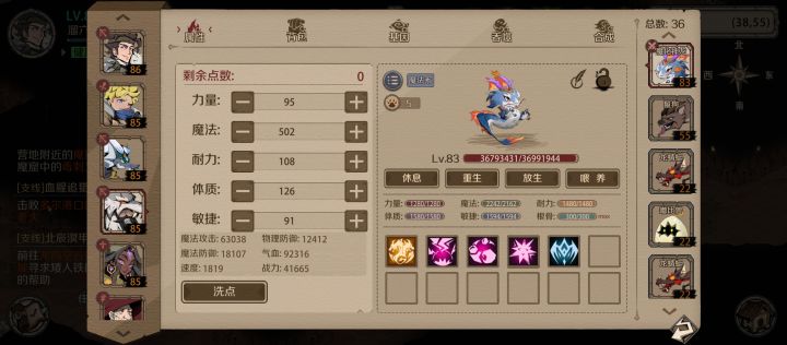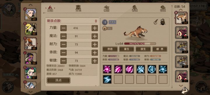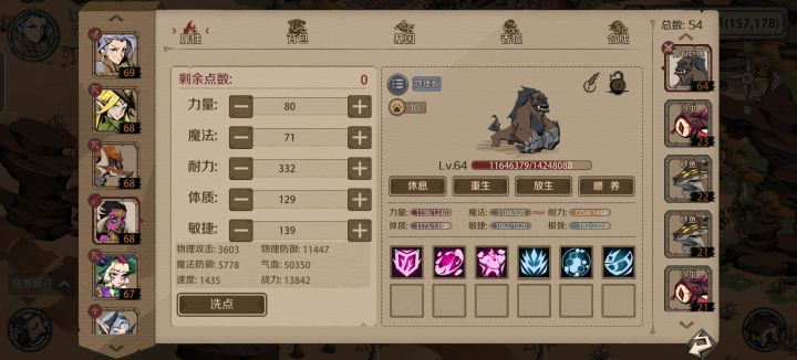 这是我的阵容。后面准备是把法师位变成咒术或者祭司摇摆位。然后弄一只法防一只物防,按照游戏攻击逻辑来说,是不是其他宠物和角色都要比双龙的速度快?让双龙死到最后。毕竟输出全靠双龙。
